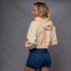 Com capuz e cordão colorido trazendo estilo para seu look de outono/inverno.